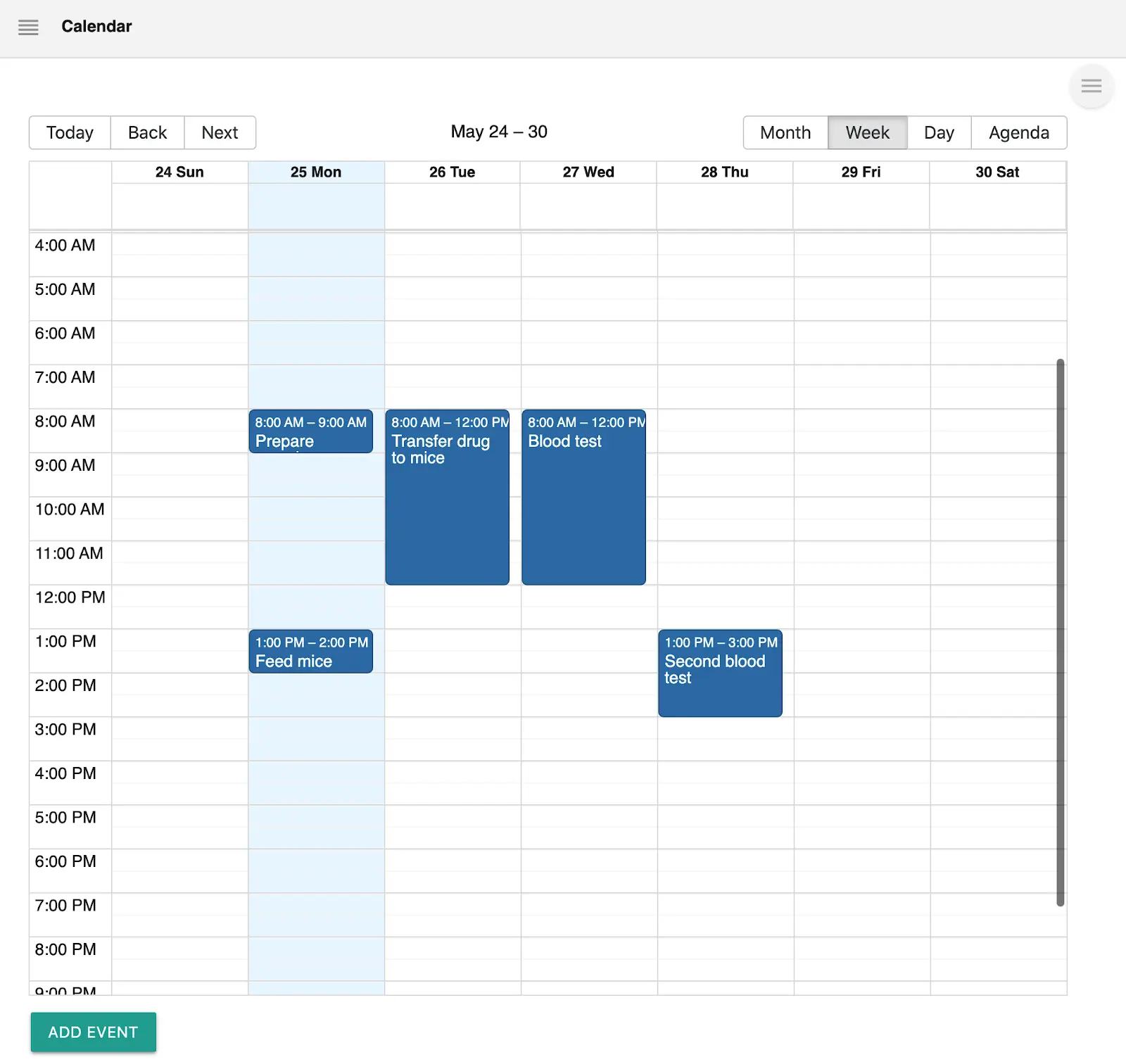 Calendar and scheduling - Viewing and scheduling who is working in the lab are now easier than ever. Use the calendar and scheduling functions to add/view time in the lab or on a specific piece of equipment for each user.