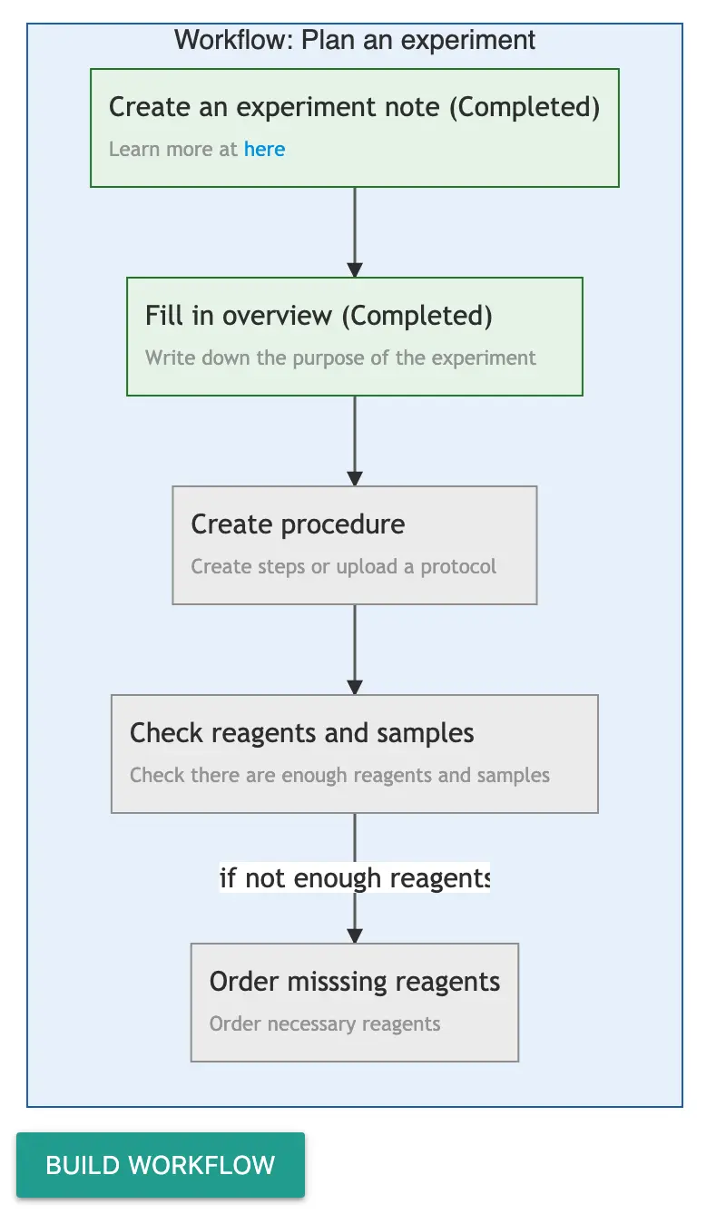Workflows widget - Workflows are now more interactive with greater functionality. Individual activities are now clickable to indicate whether they are complete or incomplete, and users can now use multiple workflows per experiment.