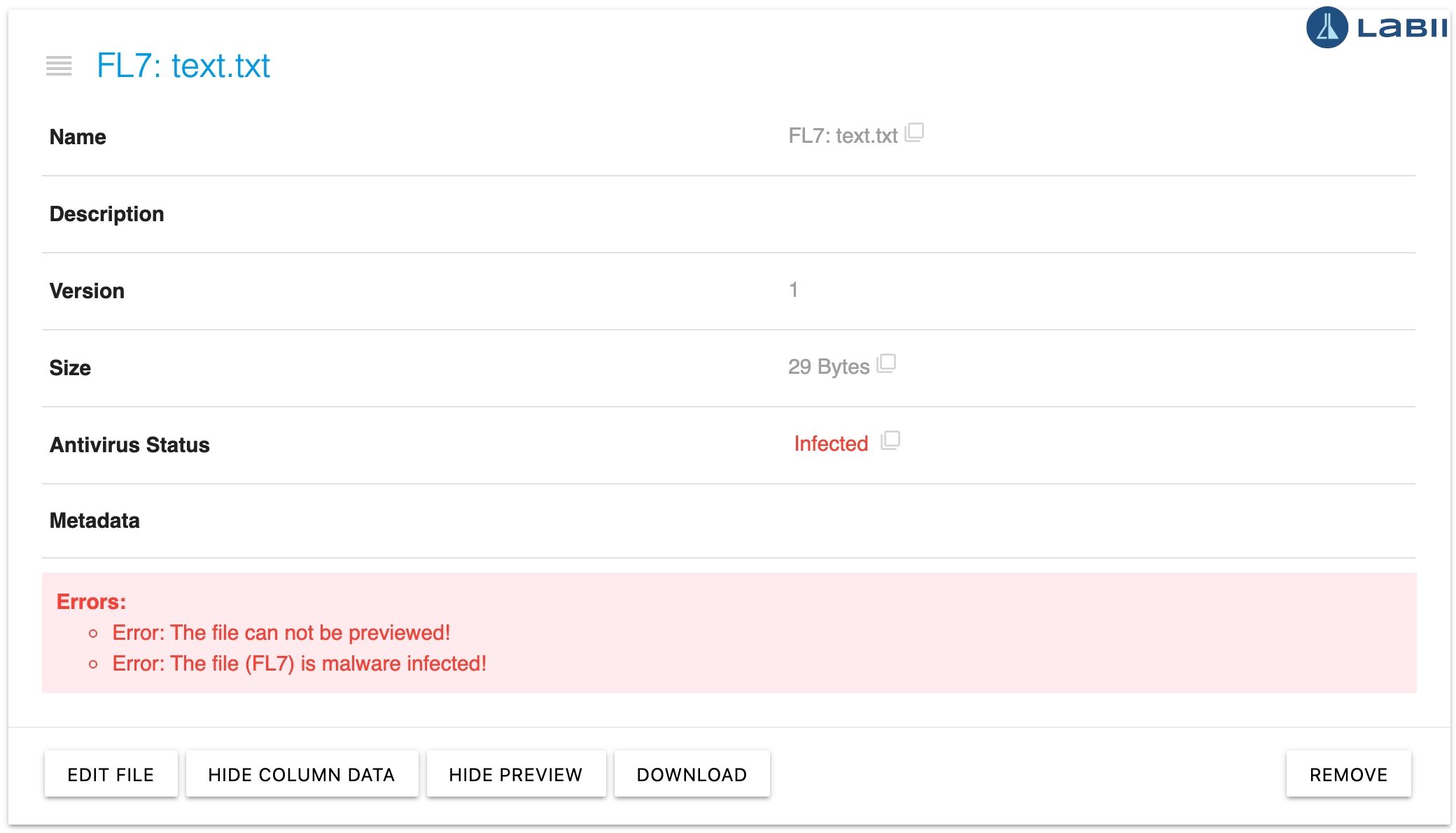 Labii Electronic Lab Notebook (ELN) and Laboratory Information Management System (LIMS) just released a minor release (v5.1) to enhance the security of the platform. The antivirus scan has been added and you can enable it during the file uploading.