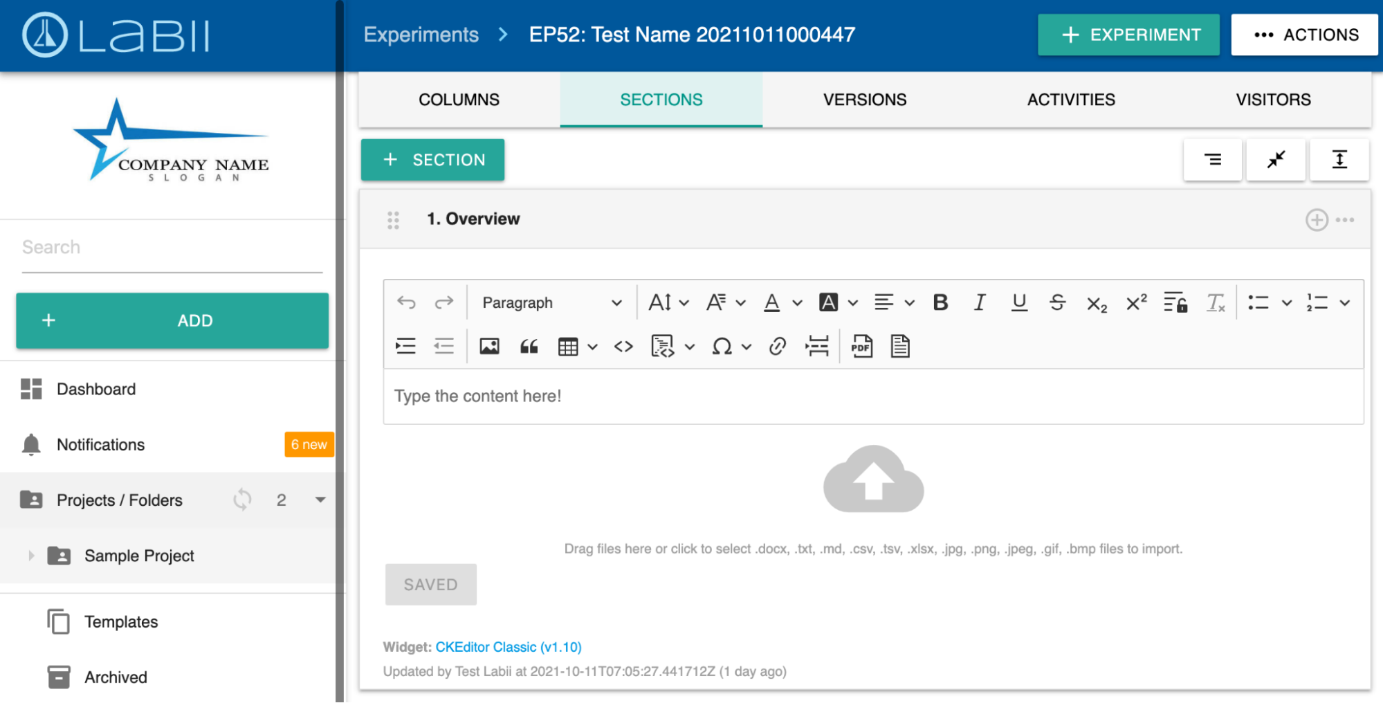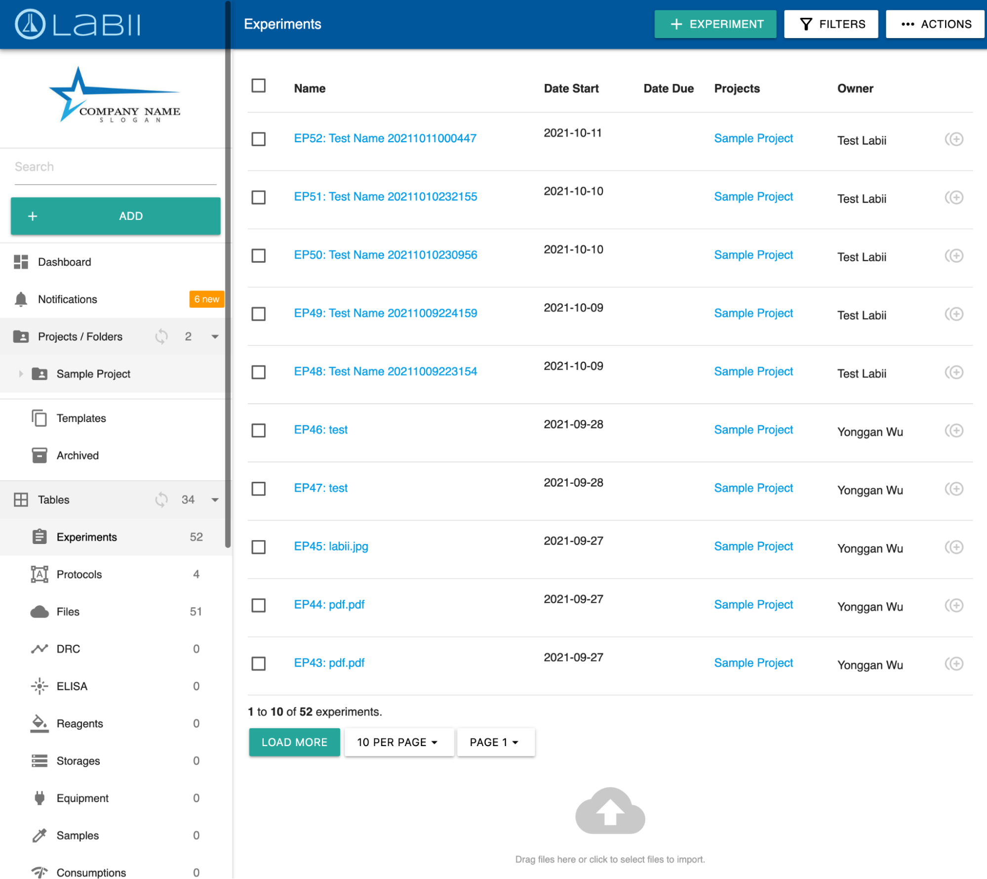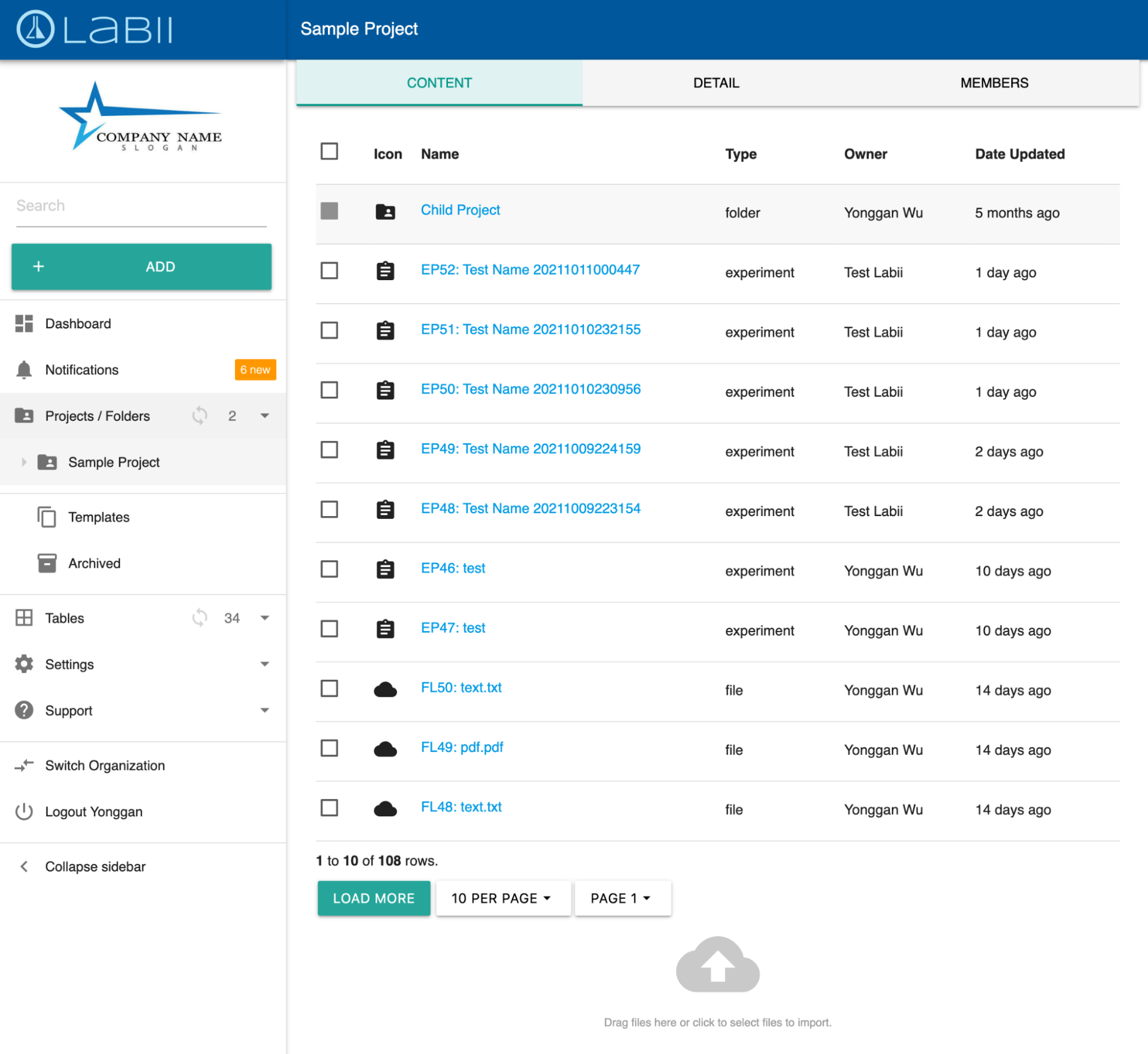 The new Labii platform also supports project and folder trees which function like traditional file systems to ensure ease of access and understanding. Here, projects and folders are identical. You can name projects/folders differently based on your preferences. Files are sorted into folders, which keep all information easily accessible and well organized.