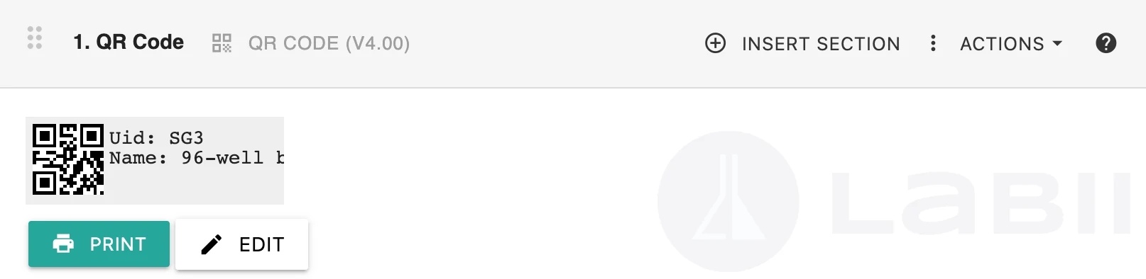 Print storage barcodes. You will be able to print the storage labels or barcode directly from Labii once the storage have been created. This can be achieved by first going to the Storage list view, selecting the storages you want to print, from the Bulk Print menu, choosing Barcode or QR code as the type of code you want to print out. Learn more at here.