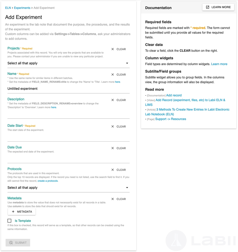 We also updated the form view with documentation, you can see the changes in the following link: https://docs.labii.com/eln-and-lims/add-record/add-a-blank-record