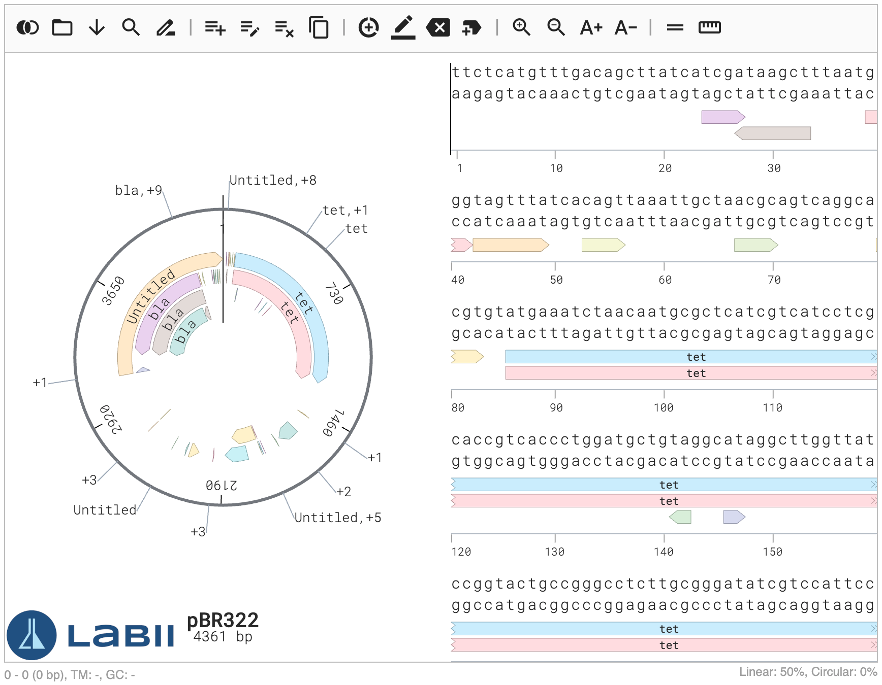 Today! Plasmid editor will make it easy for researchers to visualize, edit DNA sequences and stimulate genetic cloning using the following features: Interface, Menu bar, Status, Views, Features, Enzymes, Load from a file, Search, Change bases, change features