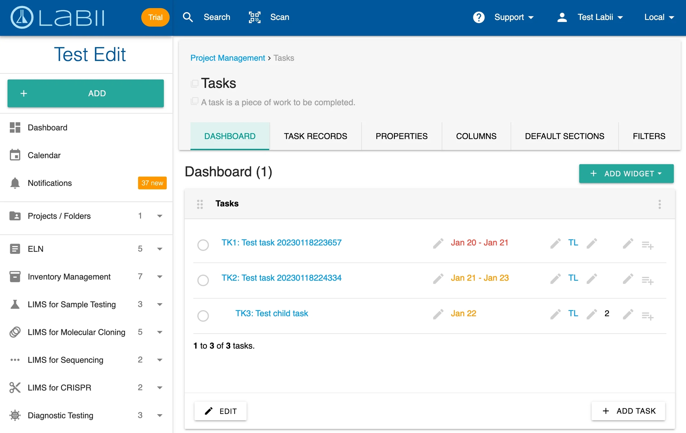 Labii's task management feature is a comprehensive and flexible solution for scientists and researchers to manage their research work. It allows users to easily create, assign, and track tasks, set reminders, and manage deadlines. The feature also includes a calendar view, progress tracking, and task statistics, which will help users to stay on top of their tasks and meet their deadlines. Additionally, Labii's task management feature is fully customizable to meet the specific requirements of each company, this means that it can be configured to integrate with existing software and workflows, making it easy for scientists to continue using the tools they are already familiar with. To learn more, schedule a meeting with Labii representatives (https://call.skd.labii.com) or create an account (https://www.labii.com/signup/) to try it out yourself.