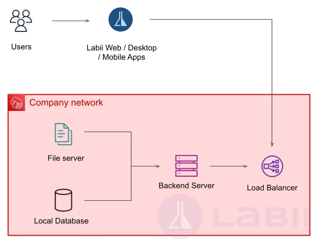 Labii takes data control to a whole new level with the introduction of the local data center. This cutting-edge solution enables organizations to host all data generated within their company's premises. By installing a database and file server directly onto the organization's server, Labii eliminates the need to rely on external data centers or cloud services for data storage.