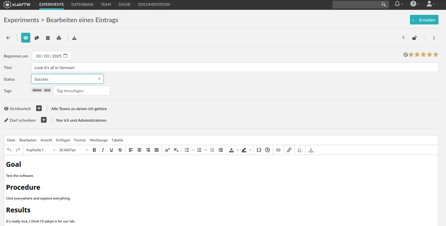 **Link:** [eLabFTW](https://www.elabftw.net/)